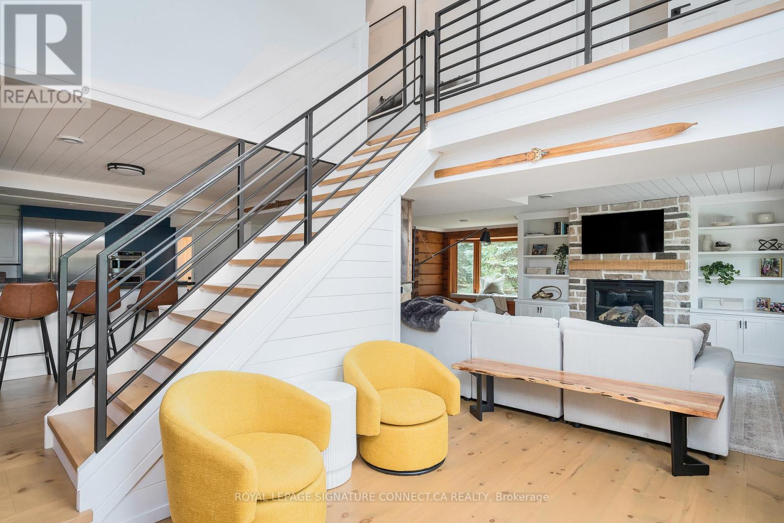 Luxury chalet just steps to Blue Mountains north lifts, Toronto Ski Club, Monterra Golf and Blue Mountain Village. This rustic-modern Scandinavian retreat has been completely renovated from top to bottom with stunning finishes and is offered fully furnished and equipped move-in ready from day one. Ideally located for private ski club members, the chalet is steps to TSC, 3-minute drive to Craigleith, 5 minutes to Alpine, 10 minutes to Osler, and 7 minutes to Georgian Peaks. Natural light fills the open-concept living spaces, with gorgeous views of the Blue Mountain ski hills, where soaring ceilings and curated details create an inviting atmosphere for both entertaining and relaxing. The chefs kitchen showcases a premium Viking refrigerator & freezer and top of the line KitchenAid appliances including wine fridge, while a custom ski room with heated floors, boot and glove warmers, and an infrared sauna ensures year-round comfort. Outdoors, enjoy a true resort lifestyle with a putting and chipping green and outdoor golf simulator, an all-season kitchen with BBQ and wood-fired pizza oven, and a 9-person Bullfrog Hydrotherapy hot tub overlooking Blue Mountain. Mature trees and professional landscaping create the perfect backdrop for summer barbecues, après-ski evenings, and everything in between. With four bedrooms plus a loft including custom bunkbeds there is plenty of space for family and guests, all beautifully furnished and move-in ready down to décor, artwork, and beach cruisers for Georgian Bay adventures just minutes away.118 Settlers Way is more than a home - it's a private resort, a mountain retreat, and a rare turnkey opportunity in the heart of Blue Mountain. (id:21123)