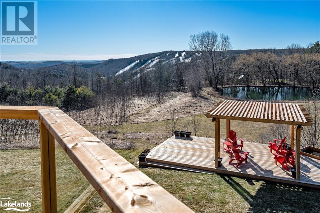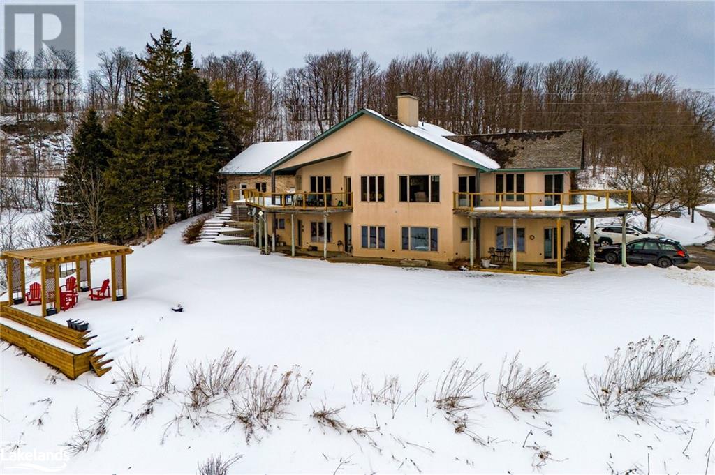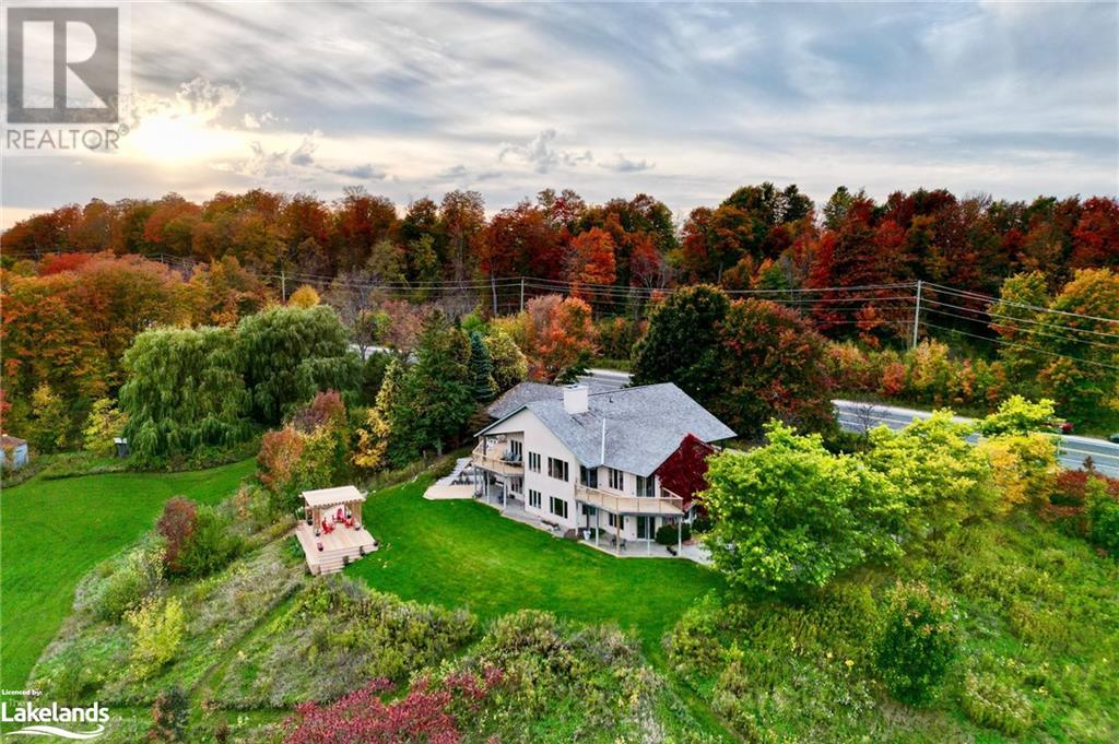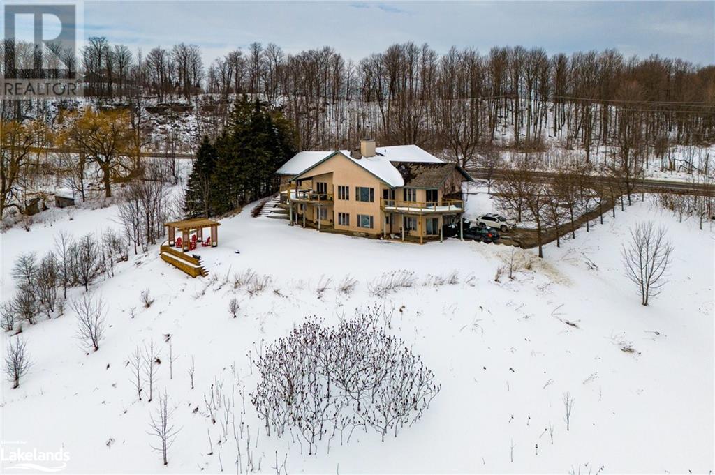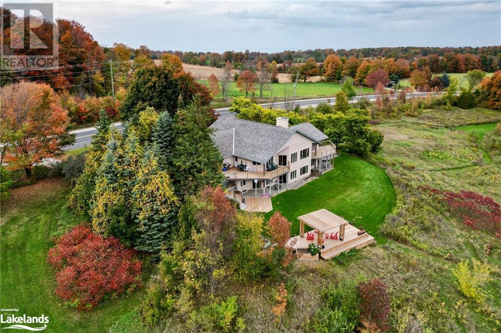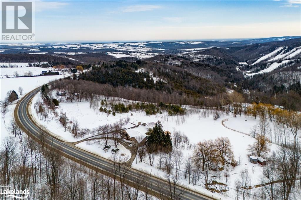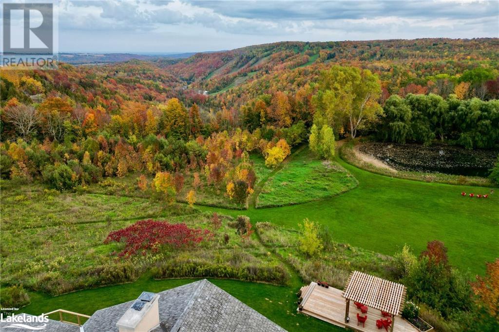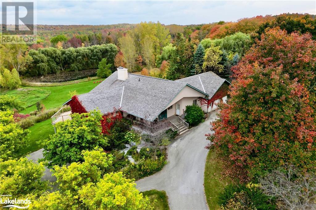 Nestled in a serene setting with breathtaking views, your 5-bedroom, 5-bath executive retreat awaits (4 baths are ensuites). There is also an unbeatable financial advantage with an assumable mortgage of up to $595K at a low 2% interest rate (until Nov. ?26). Spectacular views of your 0.75 acre pond and Devil?s Glen Provincial Park, create a picturesque and tranquil setting for this 9.35 acre property. Boasting over 4,100 square feet of living space and an additional 2,500+ square feet of decking and patio space, this home is perfect for entertaining or simply enjoying the expansive outdoor surroundings. The home has been beautifully maintained and features timeless finishes throughout, including cathedral ceilings, a country kitchen with granite countertops, a wet pantry, and exquisite stained glass details that add a touch of elegance and charm. The spacious 2-car garage, high-speed fibre internet, pond-fed sprinkler system, and separate lower level entry offer convenience, while two state-of-the-art geothermal WaterFurnace systems ensure year-round comfort. Three cozy fireplaces add warmth and ambiance. Currently operating as a bed and breakfast, this property is also well-suited for an in-law suite or various other home-based business ventures. Imagine the four-season activities you will enjoy with the Bruce Trail at your doorstep and several ski resorts and golf courses just a short drive away. Approximately 90 minutes from Toronto, 40 minutes from Barrie, and 20 minutes to Blue Mountain Village. (id:21123)