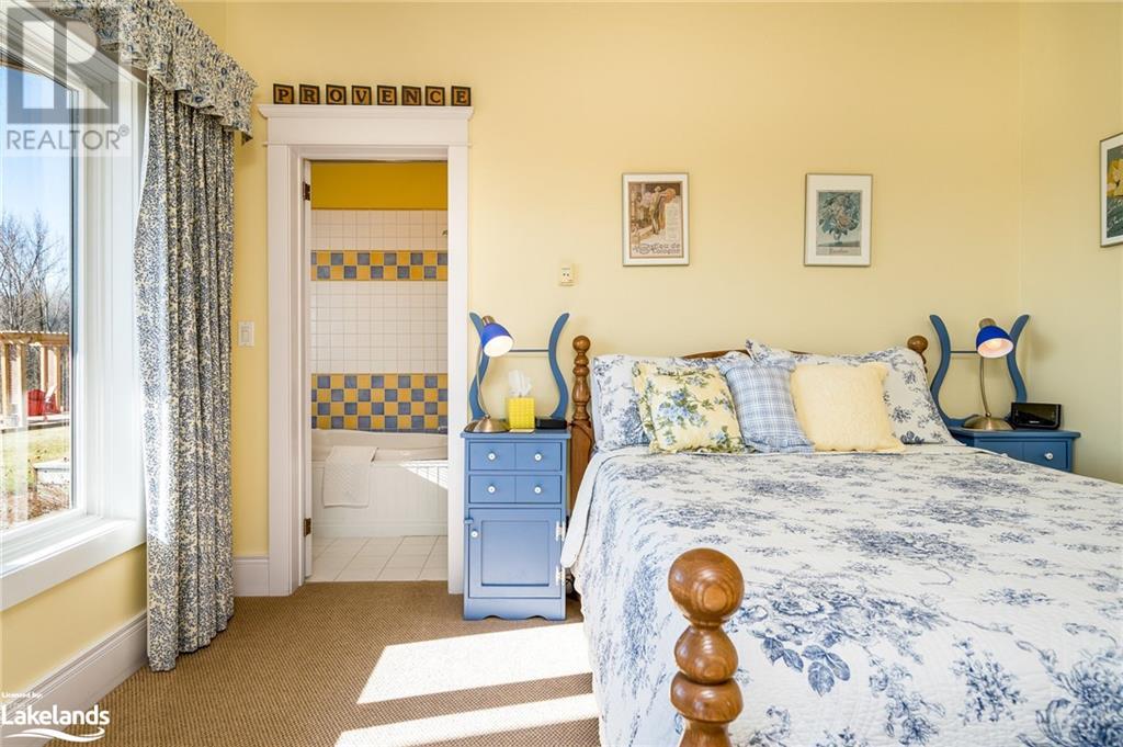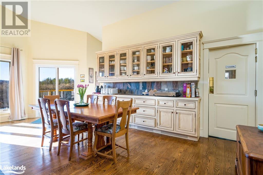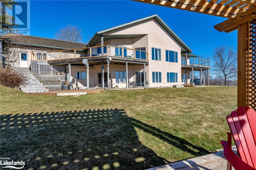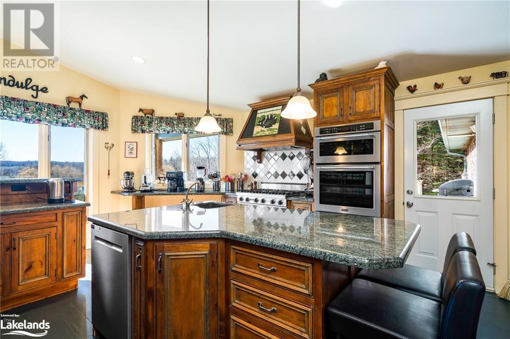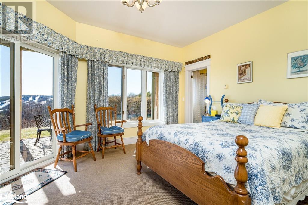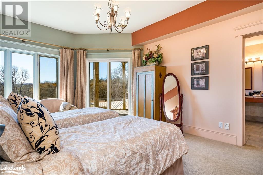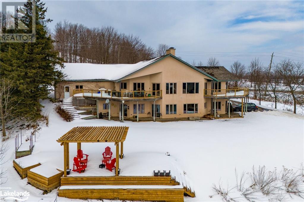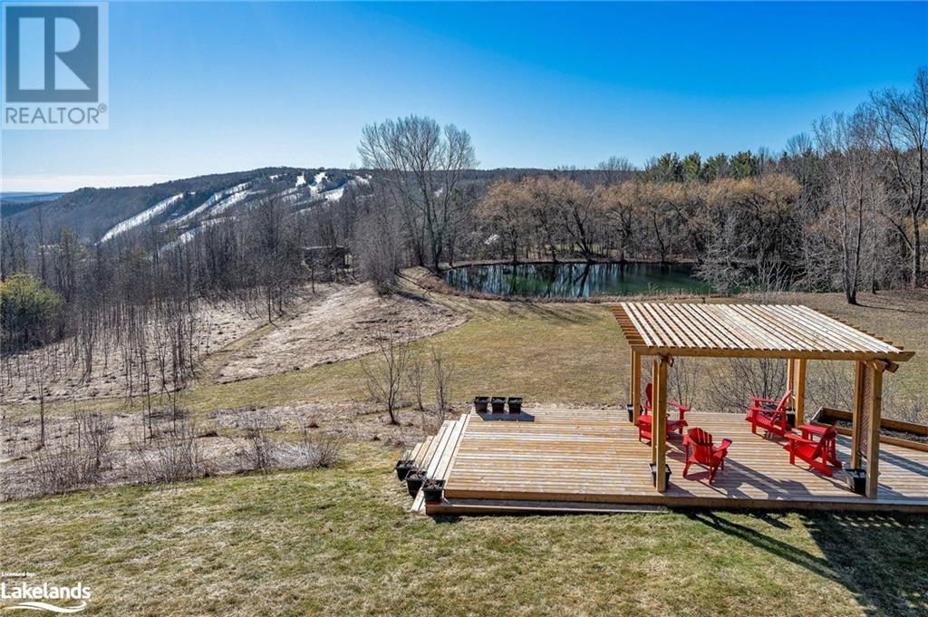 Nestled in a serene setting with breathtaking views, your 5-bedroom, 5-bath executive retreat awaits (4 baths are ensuites). There is also an unbeatable financial advantage with an assumable mortgage of up to $595K at a low 2% interest rate (until Nov. ?26). Spectacular views of your 0.75 acre pond and Devil?s Glen Provincial Park, create a picturesque and tranquil setting for this 9.35 acre property. Boasting over 4,100 square feet of living space and an additional 2,500+ square feet of decking and patio space, this home is perfect for entertaining or simply enjoying the expansive outdoor surroundings. The home has been beautifully maintained and features timeless finishes throughout, including cathedral ceilings, a country kitchen with granite countertops, a wet pantry, and exquisite stained glass details that add a touch of elegance and charm. The spacious 2-car garage, high-speed fibre internet, pond-fed sprinkler system, and separate lower level entry offer convenience, while two state-of-the-art geothermal WaterFurnace systems ensure year-round comfort. Three cozy fireplaces add warmth and ambiance. Currently operating as a bed and breakfast, this property is also well-suited for an in-law suite or various other home-based business ventures. Imagine the four-season activities you will enjoy with the Bruce Trail at your doorstep and several ski resorts and golf courses just a short drive away. Approximately 90 minutes from Toronto, 40 minutes from Barrie, and 20 minutes to Blue Mountain Village. (id:21123)