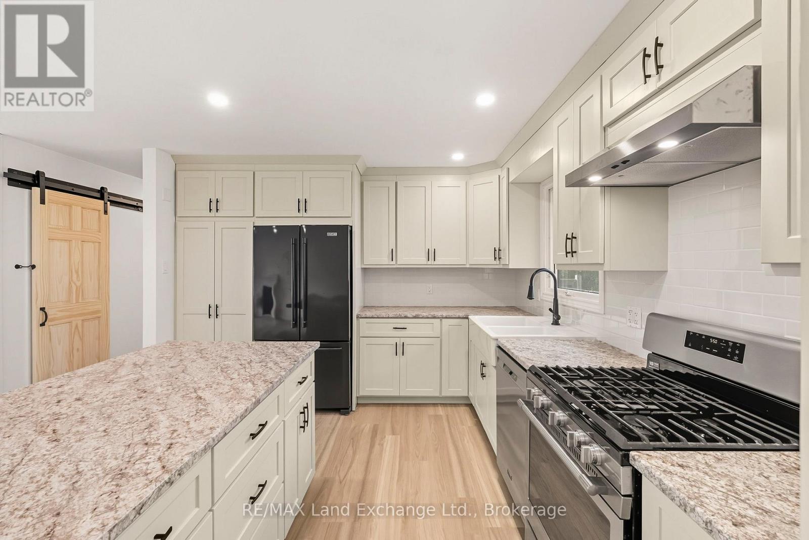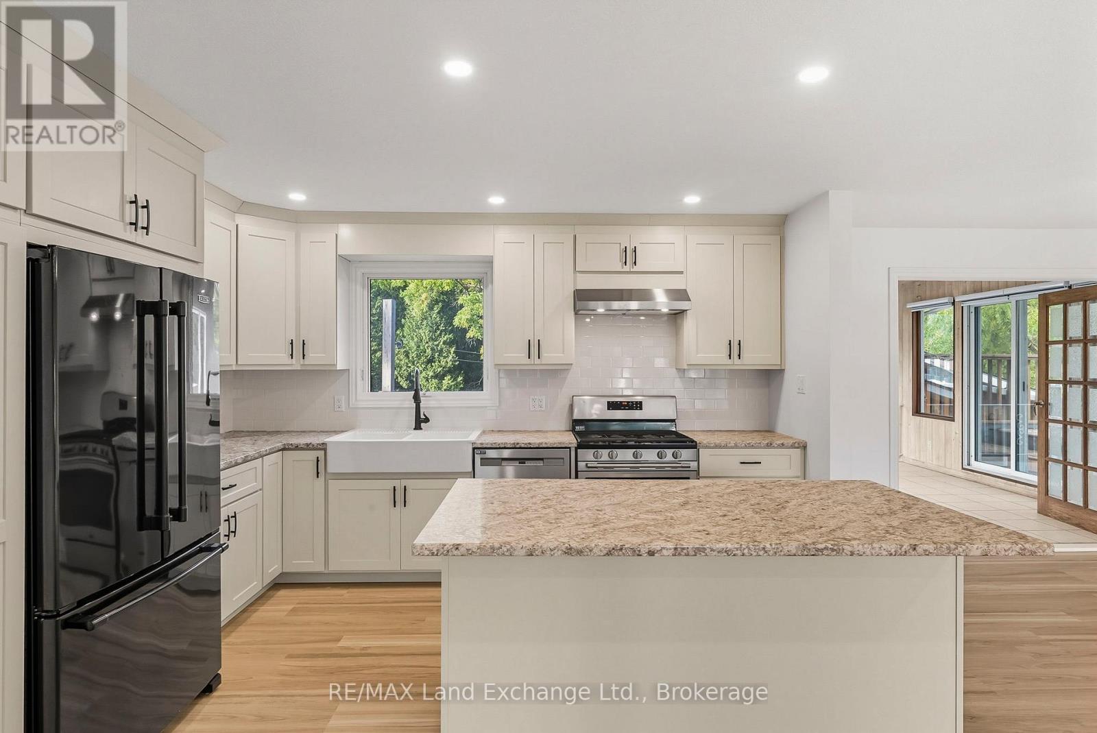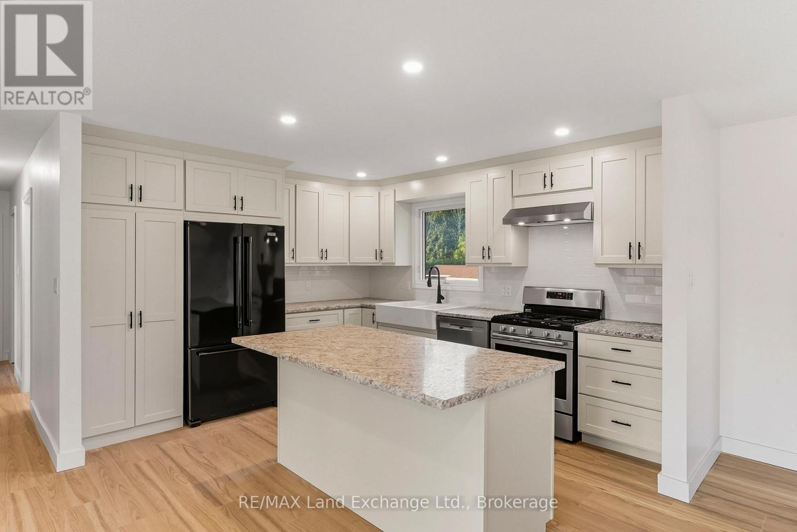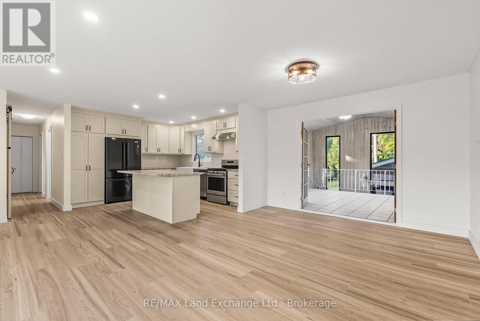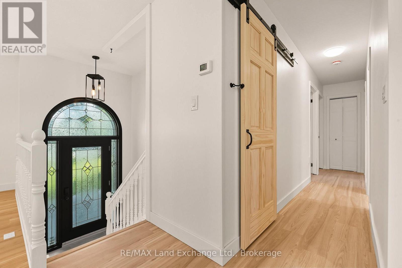 A rare find! Expansive 5-bedroom family size home on a large, mature lot in Southampton! Beautifully updated, it features a custom Mennonite-made modern kitchen overlooking the remarkably spacious open-concept living and dining areas with pot lighting, a natural gas fireplace and striking 10-foot bay window. A bright sunroom with vaulted ceiling overlooks the backyard and opens to a refinished raised deck, perfect for relaxing or entertaining. The primary bedroom has a stylish 5-piece semi-ensuite bath and ample closet space. Upstairs youll find three bedrooms, while the lower level offers two more generously sized bedrooms, a finished rec room with a second gas fireplace, and another full bathroom. This roomy layout delivers both comfort and functionality for family living. From the lower level, walk out to a private back patio and deck overlooking the swimming pool and deep lot with a backdrop of mature trees, along with the added privacy of no rear neighbour. Completing the property is an 800 sq. ft. detached garage/workshop that provides plenty of space for vehicles, storage, or hobbies. This property offers lots of storage, plenty of parking and the roof was just recently reshingled in 2021! A must see! (id:21123)